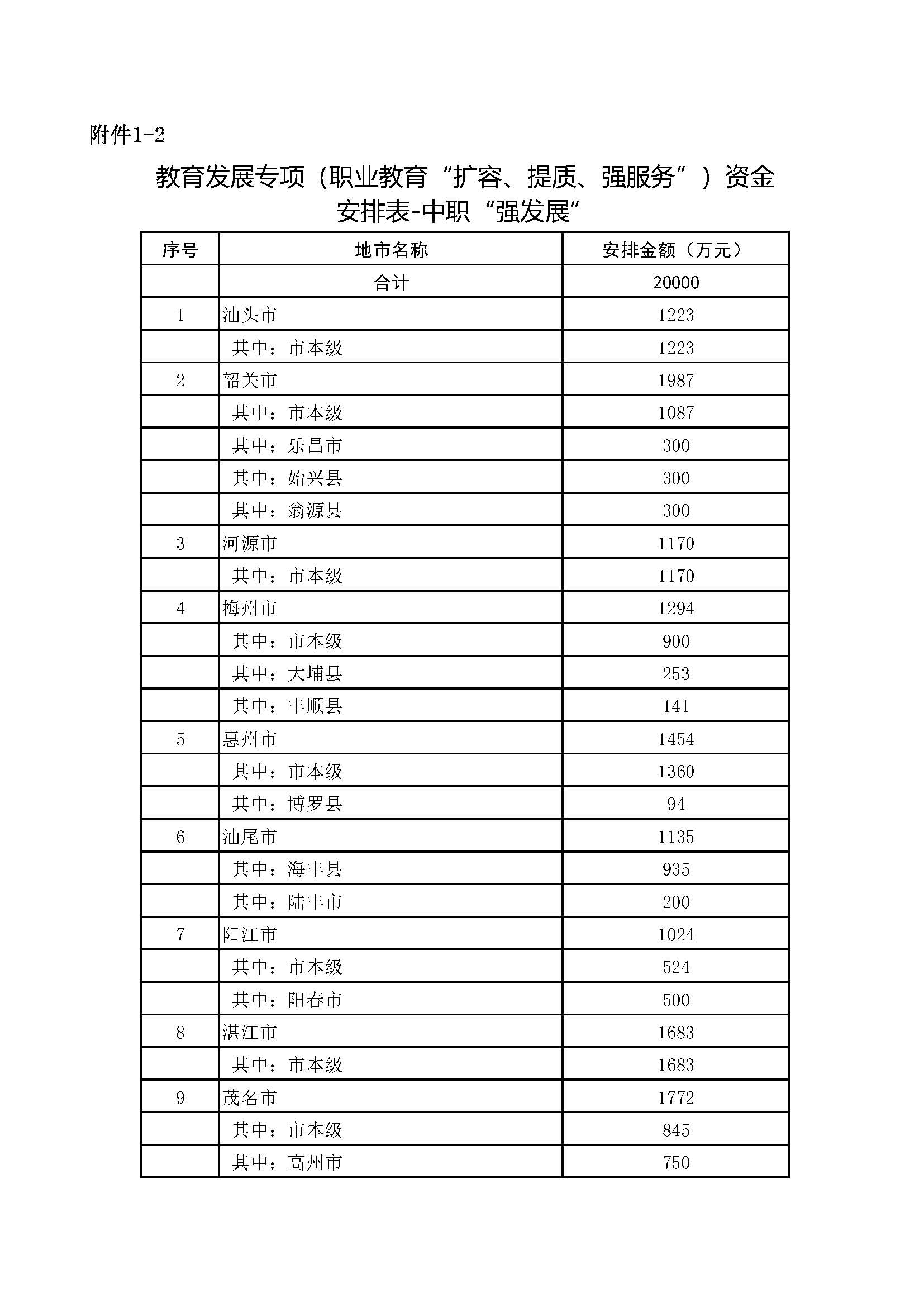 根據(jù)《廣東省省級財政專項資金管理辦法(修訂)》(粵府〔2023〕34號)等文件要求,現(xiàn)將我省2024年教育發(fā)展專項資金(職業(yè)教育“擴容、提質(zhì)、強服務”)60000萬元的分配方案及績效目標(見附件1、2)予以公示。公示期自2023年12月26日至2024年1月1日,共7天。