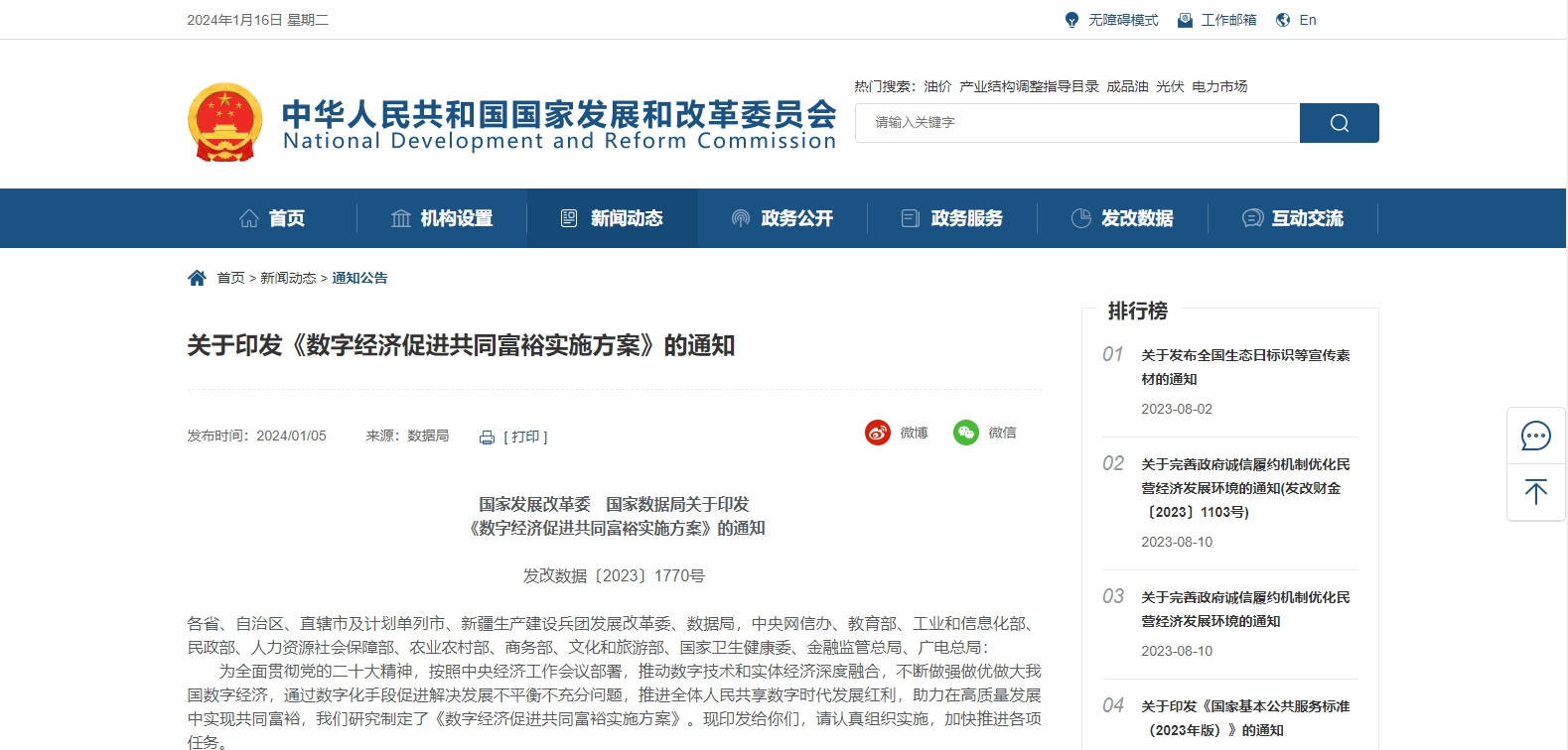 國家發(fā)展改革委、國家數(shù)據(jù)局印發(fā)《數(shù)字經(jīng)濟(jì)促進(jìn)共同富裕實(shí)施方案》