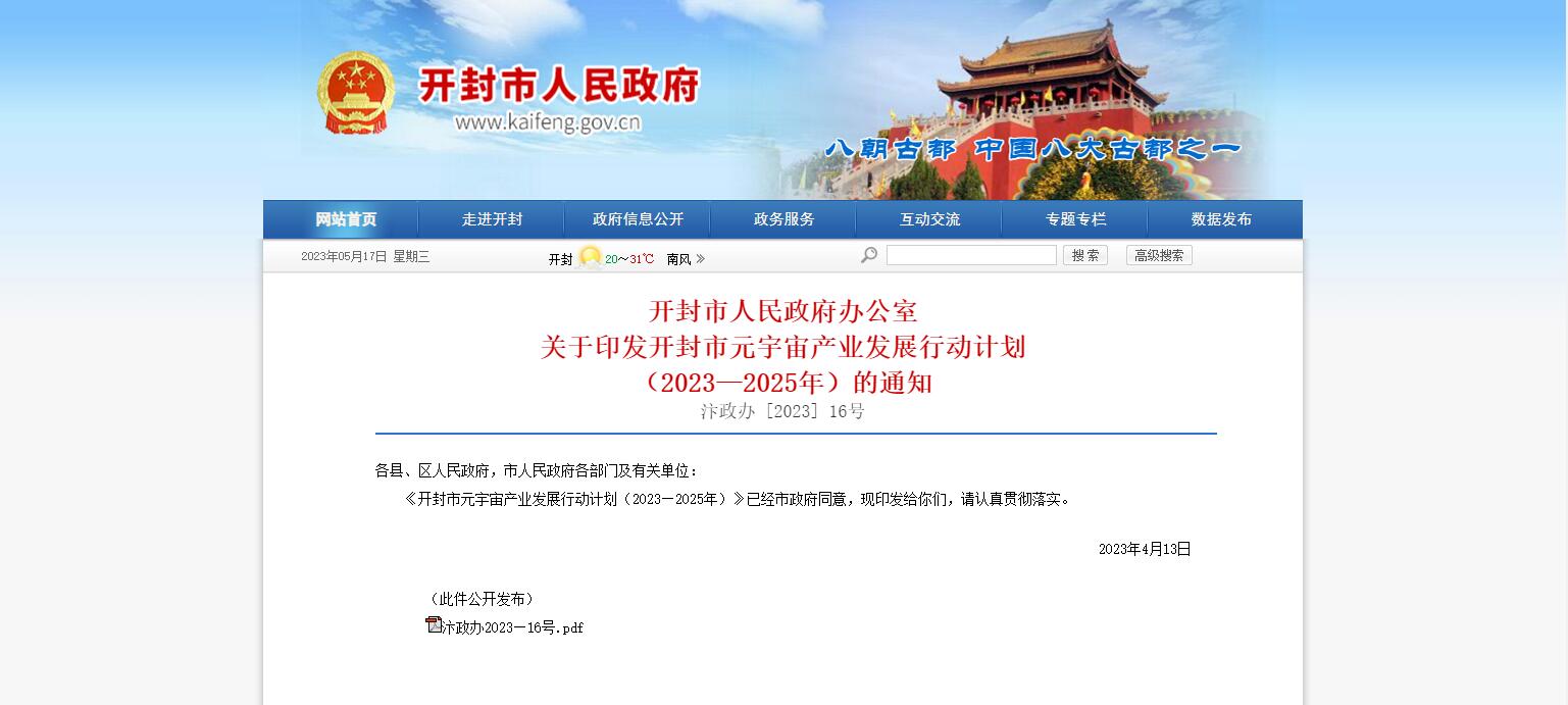 開(kāi)封市印發(fā)《開(kāi)封市元宇宙產(chǎn)業(yè)發(fā)展行動(dòng)計(jì)劃 (2023—2025年)》