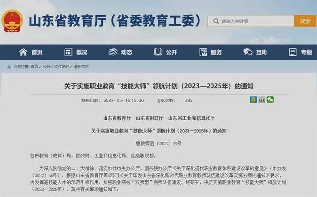 山東啟動(dòng)職業(yè)教育“技能大師”領(lǐng)航計(jì)劃!