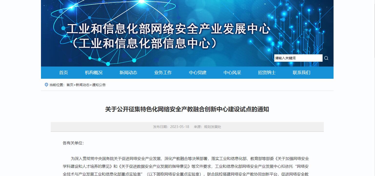 工信部發(fā)布關(guān)于公開(kāi)征集特色化網(wǎng)絡(luò)安全產(chǎn)教融合創(chuàng)新中心建設(shè)試點(diǎn)的通知
