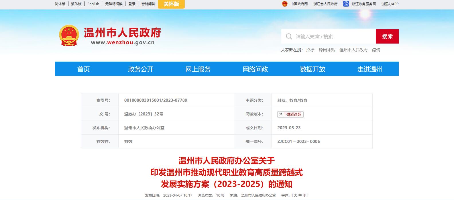 建設(shè)職教高地!溫州出臺(tái)推動(dòng)現(xiàn)代職業(yè)教育高質(zhì)量跨越式發(fā)展“二十條措施”