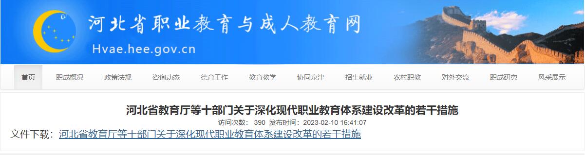 河北省教育廳等十部門發(fā)布關(guān)于深化現(xiàn)代職業(yè)教育體系建設(shè)改革的若干措施