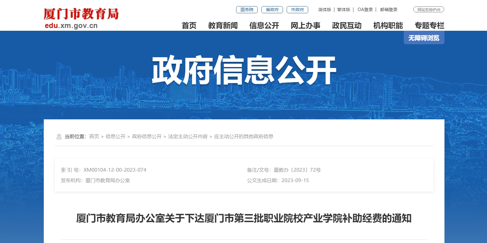廈門市教育局發(fā)布下達(dá)廈門市第三批職業(yè)院校產(chǎn)業(yè)學(xué)院補(bǔ)助經(jīng)費通知